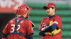[OSEN=잠실, 백승철 기자] 16일 오후 서울 잠실구장에서 열린 '2015 타이어뱅크 KBO 리그' LG 트윈스와 KIA 타이거즈의 경기 1회말 임기준이 이성우와 이야기를 나누고 있다. LG는 이날 KIA 타이거즈와 시즌 4차전에서 임지섭을 선발투