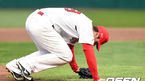 [OSEN=대전, 손용호 기자] 17일 대전 한화생명이글스파크에서 열린 2015 타이어뱅크 KBO리그 한화 이글스와 NC 다이노스의 경기 전 김회성이 모자에 달린 세월호 추모 리본을 떼어내고있다. NC는 선발투수로 베테랑 손민한(40)을 예고