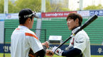 [OSEN=잠실, 지형준 기자] 18일 오후 서울 잠실구장에서 '2015 타이어뱅크 KBO 리그' 두산 베어스와 롯데 자이언츠의 경기가 열린다. 경기에 앞서 롯데 임재철이 두산 선수들에 인사를 하고 있다. 두산은 장원준이 친정팀 롯데와 리
