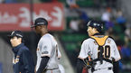 [OSEN=요코하마, 이대선 기자] 21일 오후 일본 가나가와현 요코하마 스타디움에서 2015 일본프로야구 요코하마 DeNA 베이스타스와 한신타이거스의 경기가 열렸다. 7회말 1사 1,2루에서 요코하마 쓰쯔고의 좌전 적시타때 홈을 밟은 2