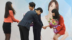 [OSEN=정송이 기자] 23일 오전 서울 종로구 서울지방국세청에서 진행된 '국세청 홍보대사 위촉식'에서 송승헌과 윤아가 꽃다발을 전달한 국세청 직원과 인사를 나누고 있다. 국세청 홍보대사로 위촉된 송승헌과 윤아는 2015년 국