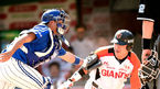 [OSEN=부산,박준형 기자] 26일 오후 부산 사직구장에서 열린 '2015 타이어뱅크 KBO리그' 롯데 자이언츠와 삼성 라이온즈의 경기, 4회말 1사 2,3루 롯데 손아섭의 내야땅볼때 3루 주자 문규현이 삼성 이지영 포수에게 태그아웃되고 있