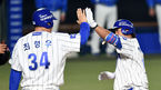 [OSEN=대구, 이대선 기자] 28일 오후 대구 시민운동장야구장에서 '2015 타이어뱅크 KBO 리그' 삼성과 LG의 경기가 열렸다. 4회말 1사 1루에서 삼성 박석민이 좌중월 투런 홈런을 치고 더그아웃에서 류중일 감독과 하이파이브를 하고