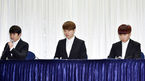[OSEN=민경훈 기자] 28일 오후 서울 마포구 상암 스탠포드 호텔 그랜드 볼룸에서 열린 옹달샘(유세윤, 장동민, 유상무) 긴급 기자회견에서 장동민 유상무 유세윤이 사과를 하고 있다. 현재 장동민을 비롯한 옹달샘 멤버들은 세 사
