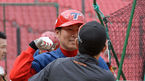 [OSEN=광주, 지형준 기자] 30일 오후 광주-KIA챔피언스필드에서 '2015 타이어뱅크 KBO 리그' KIA 타이거즈와 한화 이글스의 경기가 열린다. 경기에 앞서 KIA 이성우와 한화 이용규가 인사를 나누며 장난을 치고 있다. 전날은 KIA가 이홍