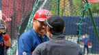 [OSEN=광주, 지형준 기자] 30일 오후 광주-KIA챔피언스필드에서 '2015 타이어뱅크 KBO 리그' KIA 타이거즈와 한화 이글스의 경기가 열린다. 경기에 앞서 KIA 이범호가 한화 이용규와 전날 험버의 사구에 대해 이야기를 나누고 있다. 전