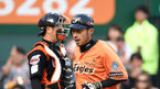 [OSEN=대전, 이대선 기자] 1일 오후 대전 한화생명이글스파크에서 '2015 타이어뱅크 KBO 리그' 한화와 롯데의 경기가 열렸다. 1회말 2사에서 한화 김경언이 중월 솔로홈런을 치고 홈을 밟고 있다. 한화는 롯데에서 3년간 활약한 쉐인