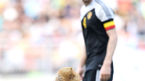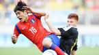 [OSEN=수원,박준형 기자] 1일 오후 경기도 수원시 수원월드컵경기장에서 열린 '2015 수원 JS컵 U-18 국제청소년축구대회' 한국과 벨기에의 경기, 후반 한찬희가 벨기에 수비에 걸려 넘어지고 있다. 안익수 감독이 지난해 12월부터 지