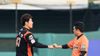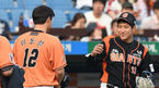 [OSEN=대전, 이대선 기자] 1일 오후 대전 한화생명이글스파크에서 열릴 '2015 타이어뱅크 KBO 리그' 한화와 롯데의 경기에 앞서 롯데 강민호와 한화 정근우가 인사를 나누고 있다. 한화는 롯데에서 3년간 활약한 쉐인 유먼(36)을 선발