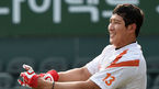 [OSEN=대전, 이대선 기자] 1일 오후 대전 한화생명이글스파크에서 열릴 '2015 타이어뱅크 KBO 리그' 한화와 롯데의 경기에 앞서 롯데 황재균이 타격 훈련을 준비하며 미소를 짓고 있다. 한화는 롯데에서 3년간 활약한 쉐인 유먼(36)을