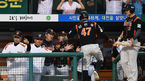 [OSEN=대전, 이대선 기자] 2일 오후 대전 한화생명이글스파크에서 '2015 타이어뱅크 KBO 리그' 한화와 롯데의 경기가 열렸다. 7회초 2사 1,2루 롯데 정훈의 2타점 적시 2루타때 홈을 밟은 강민호가 더그아웃에서 환호하고 있다. 롯데