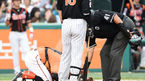 [OSEN=대전, 이대선 기자] 2일 오후 대전 한화생명이글스파크에서 '2015 타이어뱅크 KBO 리그' 한화와 롯데의 경기가 열렸다. 5회초 무사에서 한화 김성근 감독이 공을 맞고 고통스러워하는 조인성을 걱정하고 있다. 롯데는 좌완 레