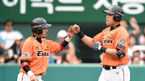 [OSEN=대전, 이대선 기자] 2일 오후 대전 한화생명이글스파크에서 '2015 타이어뱅크 KBO 리그' 한화와 롯데의 경기가 열렸다. 1회말 1사 3루에서 한화 최진행이 좌월 투런 홈런을 치고 홈에서 이용규와 하이파이브를 하고 있다. 롯데