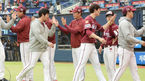 [OSEN=잠실, 백승철 기자] 3일 오후 서울 잠실구장에서 열린 '2015 타이어뱅크 KBO 리그' LG 트윈스와 넥센 히어로즈의 경기 종료 후 넥센 선수들이 하이파이브를 하고 있다. 넥센 히어로즈가 LG 트윈스를 완벽히 제압하며 기분 좋게