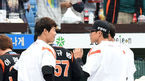 [OSEN=대전, 이대선 기자] 3일 오후 대전 한화생명이글스파크에서 '2015 타이어뱅크 KBO 리그' 한화와 롯데의 경기가 열렸다. 경기에 앞서 롯데 이성민과 박세웅이 이야기를 나누고 있다. 한화는 좌완 유창식을 선발로 내세웠다. 유
