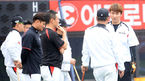 [OSEN=수원, 정송이 기자] 3일 오후 경기도 수원 kt위즈파크에서 '2015 타이어뱅크 KBO리그 kt 위즈와 NC 다이노스의 경기에 앞서, 이적생 장성우와 kt 코치들이 이야기를 나누고 있다. kt는 선발 투수로 고졸 루키 엄상백을 선발로 나