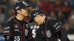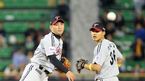 [OSEN=대전, 백승철 기자] 6일 오후 대전 한화생명 이글스 파크에서 열린 '2015 타이어뱅크 KBO 리그' 한화 이글스와 kt 위즈의 경기 4회말 1사 2,3루 조인성이 유격수 땅볼을 치고 상대 실책으로 출루해 임수민 코치와 하이파이브를