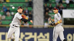 [OSEN=잠실, 지형준 기자] 6일 오후 서울 잠실야구장에서 '2015 타이어뱅크 KBO리그' 두산 베어스와 LG 트윈스의 경기가 열렸다. 4회말 무사 1루에서 LG 오지환이 두산 김재환의 2루 땅볼에 홍성흔을 포스아웃시키고 1루로 송구하고