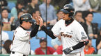 [OSEN=대전, 백승철 기자] 6일 오후 대전 한화생명 이글스 파크에서 열린 '2015 타이어뱅크 KBO 리그' 한화 이글스와 kt 위즈의 경기 3회초 무사 2,3루 마르테가 2타점 적시타를 치고 김민재 코치와 하이파이브를 하고 있다. kt 외국인