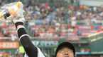 [OSEN=창원, 민경훈 기자] 6일 오후 창원시 마산 야구장서 열린 '2015 타이어뱅크 KBO 리그' NC 다이노스와 KIA 타이거즈의 경기, 2회초 2사 주자 3루 KIA 강한울의 중견수 앞 1타점 적시타때 오늘 한화에서 트레이드 된 홍건희 유니폼을