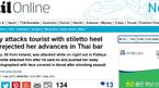 태국에서 휴식을 즐기던 한 남성이 트래스젠더에게 폭행을 당해 머리가 찢어지는 사건이 발생했다. 지난 5일(이하 한국시간) 영국 매체 '데일리메일'은 "트랜스젠더의 데이트 요구를 거절한 여행객이 하이힐로 공격을 당했다"