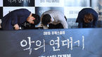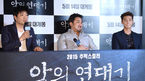 [OSEN=정송이 기자] 6일 오후 서울 행당동 CGV 왕십리점에서 열린 영화 '악의 연대기' 언론시사회에 참석한 손현주 마동석 박서준이 서로에게 고맙다는 의미로 인사를 하고 있다. 영화 '악의 연대기'는 특진을 앞둔 최고의 순간에