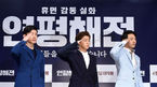 [OSEN=지형준 기자] 배우 김무열, 진구, 이현우 등이 출연하는 영화 '연평해전'(감독 김학순) 제작보고회가 6일 오전 서울 CGV 압구정에서 열렸다. 김무열, 이현우, 진구가 포토타임을 하며 거수경례를 하고 있다. '연평해전'은 2002