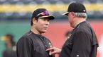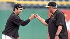 [OSEN=피츠버그(미국 펜실베니아주), 최규한 기자] 7일(한국시간) 미국 펜실베니아주 PNC파크에서 열리는 '2015 메이저리그' 피츠버그 파이어리츠와 신시내티 레즈의 경기를 앞두고, 피츠버그 강정호가 클린트 허들 감독과 인사를