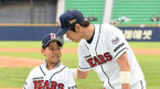 [OSEN=피츠버그(미국 펜실베니아주), 최규한 기자] 7일(한국시간) 미국 펜실베니아주 PNC파크에서 열리는 '2015 메이저리그' 피츠버그 파이어리츠와 신시내티 레즈의 경기를 앞두고, 피츠버그 강정호가 주전 2루수 닐 워커의 아들과