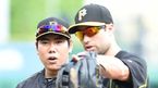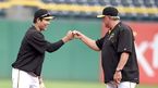 [OSEN=피츠버그(미국 펜실베니아주), 최규한 기자] 7일(한국시간) 미국 펜실베니아주 PNC파크에서 열리는 '2015 메이저리그' 피츠버그 파이어리츠와 신시내티 레즈의 경기를 앞두고, 피츠버그 강정호가 클린트 허들 감독과 인사를