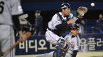 [OSEN=잠실, 김경섭 기자] 7일 오후 서울 잠실야구장에서 열린 '2015 타이어뱅크 KBO 리그' 두산 베어스와 LG 트윈스의 경기, 연장 10회말 LG 최경철이 두산 양의지가 파울볼을 처리하고 있다. 3연전 스윕을 노리는 두산과 7연패에 빠진