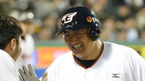 [OSEN=잠실, 김경섭 기자] 7일 오후 서울 잠실야구장에서 열린 '2015 타이어뱅크 KBO 리그' 두산 베어스와 LG 트윈스의 경기, 4회초 1사 주자 만루 LG 박지규의 외야플라이에 홈을 밟은 3루주자 한나한이 홈에서 기쁨을 나누고 있다. 3