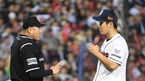 [OSEN=잠실, 김경섭 기자] 7일 오후 서울 잠실야구장에서 열린 '2015 타이어뱅크 KBO 리그' 두산 베어스와 LG 트윈스의 경기, 3회초 1사 1,3루 LG 오지환 타석에 두산 진야곱이 이영재 주심에게 이야기를 듣고 있다. 3연전 스윕을 노리