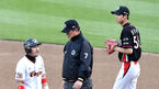 [OSEN=대전, 백승철 기자] 7일 오후 대전 한화생명 이글스 파크에서 열린 '2015 타이어뱅크 KBO 리그' 한화 이글스와 kt 위즈의 경기 1회말 무사 1루 정근우의 번트 뜬공을 엄상백이 잡고 있다. 1루에 귀루하지 못한 이용규도 아웃. 한
