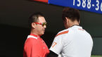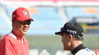 [OSEN=부산, 민경훈 기자] 7일 오후 부산 사직구장서 '2015 타이어뱅크 KBO 리그' 롯데 자이언츠와 SK 와이번스의 경기가 열릴 예정인 가운데 양 팀 훈련시간에 SK 김용희 감독과 롯데 이종운 감독이 악수를 나누고 있다. 이 날 롯데
