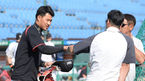 [OSEN=대전, 백승철 기자] 7일 오후 대전 한화생명 이글스 파크에서 열리는 '2015 타이어뱅크 KBO 리그' 한화 이글스와 kt 위즈의 경기 시작전 김상현이 김재현 코치와 하이파이브를 하고 있다. 한화 유먼이 kt와 홈경기에 선발등판한