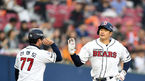 [OSEN=잠실, 이대선 기자] 8일 오후 서울 잠실야구장에서 '2015 타이어뱅크 KBO리그' 두산 베어스와 한화 이글스의 경기가 열렸다. 3회초 2사 2루에서 한화 이종환이 좌중간을 가르는 적시 2루타를 치고 임수민 코치와 하이파이브를