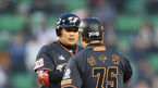 [OSEN=잠실, 이대선 기자] 8일 오후 서울 잠실야구장에서 '2015 타이어뱅크 KBO리그' 두산 베어스와 한화 이글스의 경기가 열렸다. 2회말 2사 1루에서 두산 김재환이 좌중월 투런홈런을 치고 전형도 코치와 하이파이브를 하고 있다.