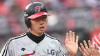 [OSEN=수원, 백승철 기자] 9일 오후 경기도 수원시 수원kt위즈파크에서 열린 '2015 타이어뱅크 KBO 리그' kt 위즈와 LG 트윈스의 경기 6회초 1사 1루 채은성이 1타점 2루타를 치고 한혁수 코치에게 장비를 건내고 있다. LG는 이날 kt 위즈