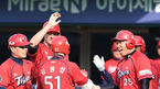 [OSEN=목동, 정송이 기자] 9일 오후 서울 목동구장에서 열린 '2015 타이어뱅크 KBO리그' 넥센 히어로즈와 KIA 타이거즈의 경기, 1회초 2사 1,2루 쓰리런을 날린 KIA 김원섭이 홈을 밟으며 필과 이범호로부터 환영을 받고 있다. KIA는 서재
