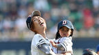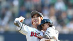 [OSEN=잠실, 이대선 기자] 9일 오후 서울 잠실야구장에서 '2015 타이어뱅크 KBO리그' 두산 베어스와 한화 이글스의 경기가 열렸다. 경기에 앞서 가수 슈가 딸 라율 양을 안고 시구를 하고 있다. 두산은 김수완을 선발로 내세웠다. 김