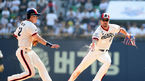 [OSEN=잠실, 지형준 기자] 10일 오후 서울 잠실구장에서 열린 '2015 타이어뱅크 KBO리그' 두산 베어스와 한화 이글스의 경기, 8회초 1사에서 두산 오재원이 한화 이종환의 2루 땅볼 타구를 맨 손으로 처리, 송구 뒤 허벅지를 잡고 괴