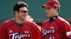 [OSEN=목동, 김경섭 기자] 10일 오후 서울 목동야구장에서 열린 '2015 타이어뱅크 KBO 리그' 넥센 히어로즈와 KIA 타이거즈의 경기, 8회초 마운드에 오른 한승혁이 이닝을 종료시키고 내려오자 서재응이 기뻐하고 있다. 넥센은 지난 5