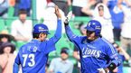 [OSEN=인천, 백승철 기자] 10일 오후 인천광역시 인천SK행복드림구장에서 열린 '2015 타이어뱅크 KBO 리그' SK 와이번스와 삼성 라이온즈의 경기 6회초 2사 1,2루 진갑용이 스리런홈런을 치고 홈에서 이승엽-우동균과 하이파이브를 하