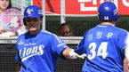 [OSEN=인천, 백승철 기자] 10일 오후 인천광역시 인천SK행복드림구장에서 열린 '2015 타이어뱅크 KBO 리그' SK 와이번스와 삼성 라이온즈의 경기 4회초 1사 최형우가 솔로홈런을 치고 이승엽과 하이파이브를 하고 있다. 팽팽한 주말 3