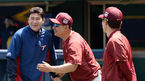 [OSEN=목동, 김경섭 기자] 10일 오후 서울 목동야구장에서 열린 '2015 타이어뱅크 KBO 리그' 넥센 히어로즈와 KIA 타이거즈의 경기, 경기시작전 KIA 서재응과 넥센 심재학코치가 이야기를 나누고 있다. 넥센은 지난 5일 목동 삼성전에