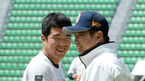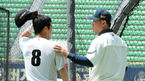 [OSEN=잠실, 지형준 기자] 10일 오후 서울 잠실구장에서 열린 '2015 타이어뱅크 KBO리그' 두산 베어스와 한화 이글스의 경기, 경기에 앞서 두산 박철우 코치와 한화 정근우가 이야기를 나누고 있다. 전날 한화의 4회초 공격이 끝난 뒤