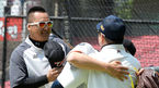[OSEN=잠실, 지형준 기자] 10일 오후 서울 잠실구장에서 열린 '2015 타이어뱅크 KBO리그' 두산 베어스와 한화 이글스의 경기, 경기에 앞서 한화 송은범이 두산 김태형 감독 품에 안겨 인사를 나누고 있다. 두산은 유희관, 한화는 미치