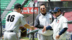 [OSEN=잠실, 지형준 기자] 10일 오후 서울 잠실구장에서 열린 '2015 타이어뱅크 KBO리그' 두산 베어스와 한화 이글스의 경기, 경기에 앞서 두산 김태형 감독과 한화 정근우가 인사를 나누고 있다. 두산은 유희관, 한화는 미치 탈보트