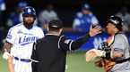 [OSEN=대구, 지형준 기자] 13일 오후 대구야구장에서 열린 '2015 타이어뱅크 KBO 리그' 삼성 라이온즈와 한화 이글스의 경기, 6회말 2사 1루에서 윤태수 구심이 삼성 나바로에 사구로 출루할 것을 명했지만 나바로는 안 맞았다는 표정